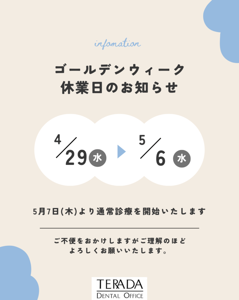 【ゴールデンウィーク休診日のお知らせ】