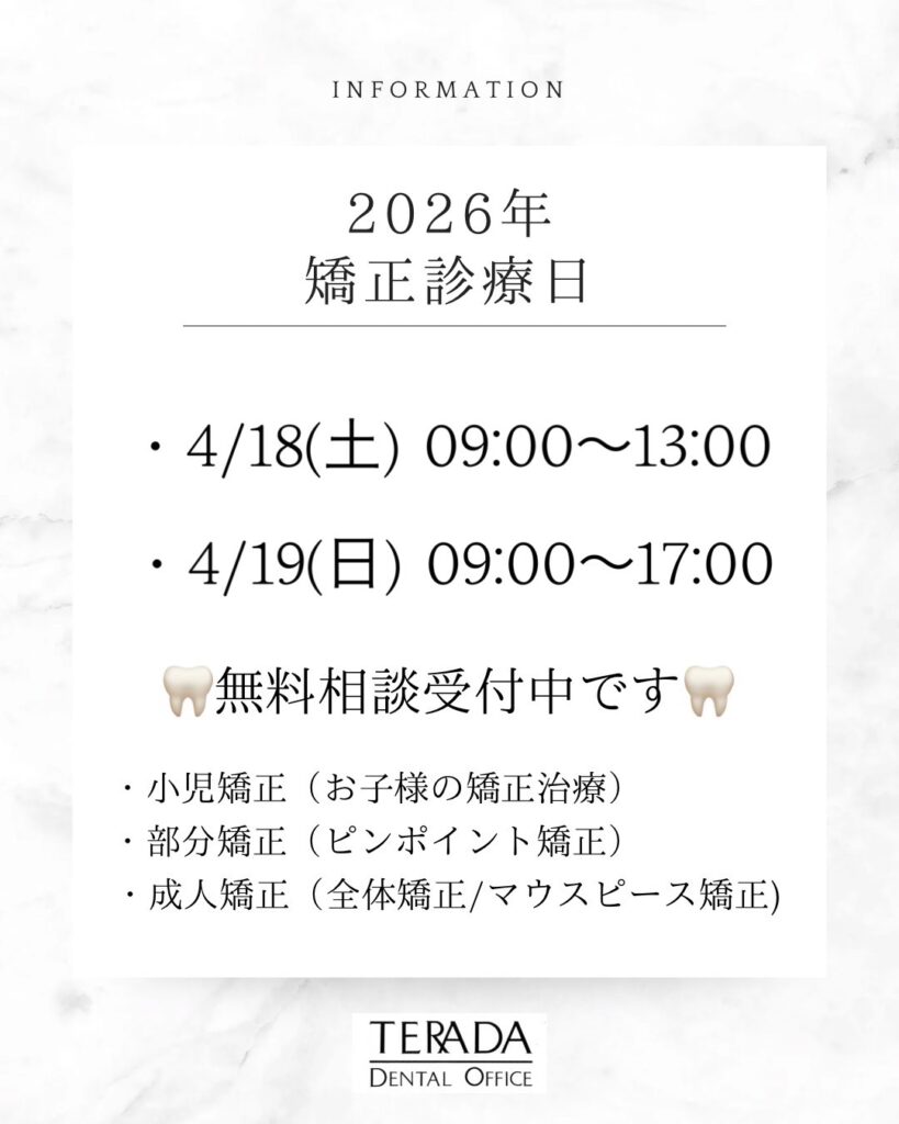 【 4月 矯正日のお知らせ】